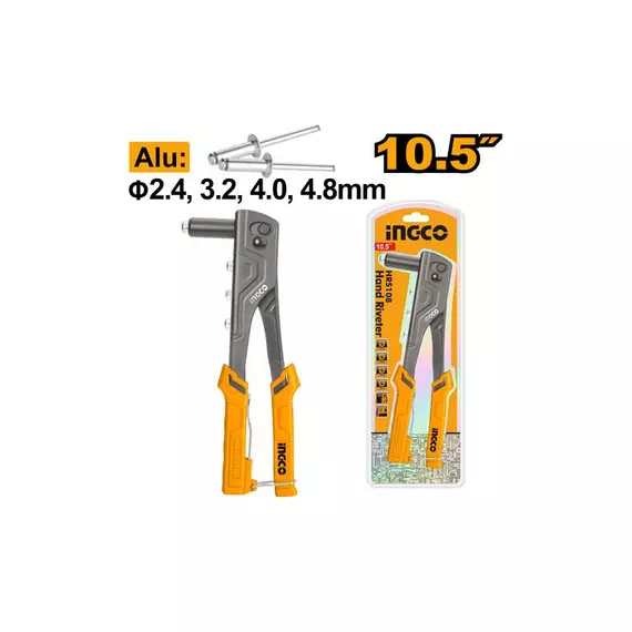 Specifications: Brand: Ingco Model: HRS108 Type: Rivet Size:10.5" Applicable aluminum rivet Size:Φ2.4mm, 3.2mm,4mm,4.8mm Packed by sliding card