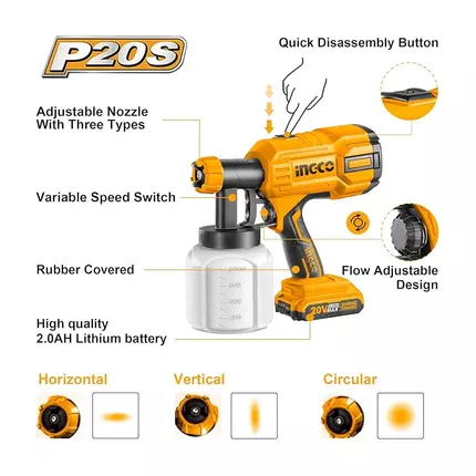 Ingco Lithium-Ion Spray Gun, 20V, 0.1-0.2Bar, 800ml CSGLI2001