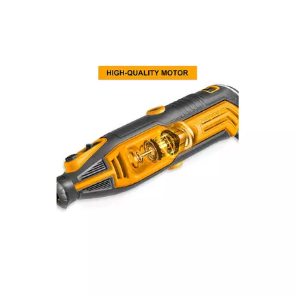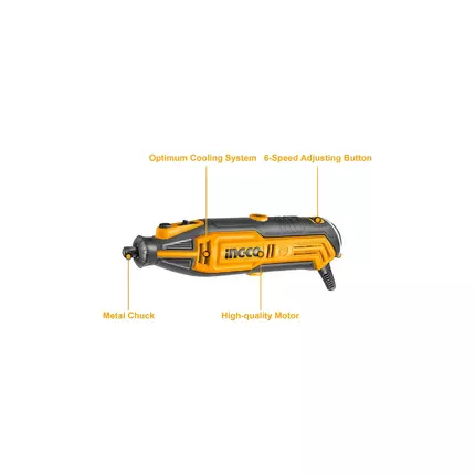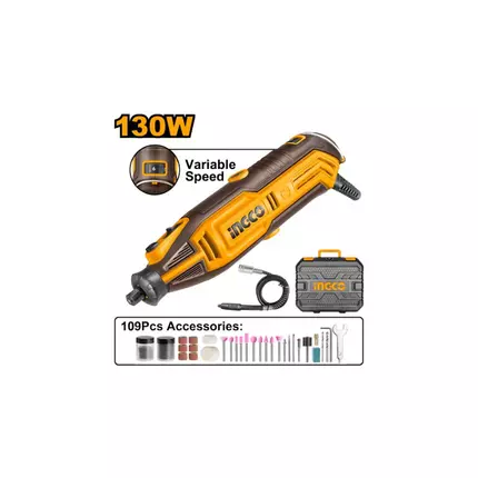 Specifications: Brand: Ingco Model: MG13328 Type: Mini Grinder Voltage:220-240V~50/60Hz Input power:130W No-load speed:10000-35000rpm Collet size:3.2mm/2.3mm Variable speed control With 1pcs flexible shaft With 109pcs accessories With 1set extra carbon brushes Packed by BMC