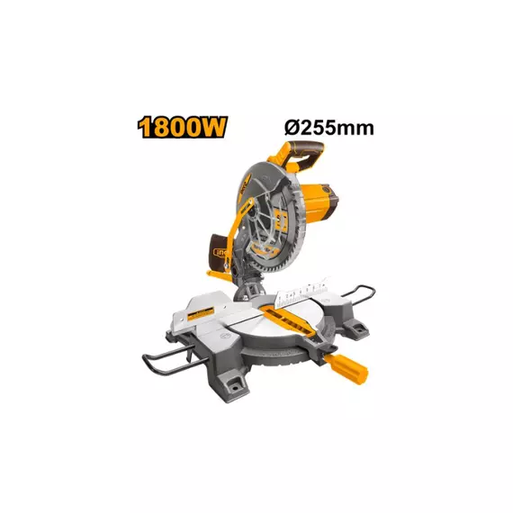Specifications: Brand: Ingco Model: BMS18007 Type: Mitre Saw Voltage: 220-240V~50/60Hz Input power: 1800W No-load speed: 5300rpm Blade size: 255mmx25.4mm Cutting capacity: Mitre/Bevel:HeightxWidth 0°×0°:H70mm×W140mm 45°×0°:H70mm×W100mm 0°×45°:H48mm×W135mm 45°×45°:H48mm×W95mm Mitre cuts 0-45° left and right Bevel cuts up to 45° to the left Include: 1 Set extra carbon brushes 2 Pcs extension bars 1 Pcs TCT blade 1 Pcs dust bag Packed by color box