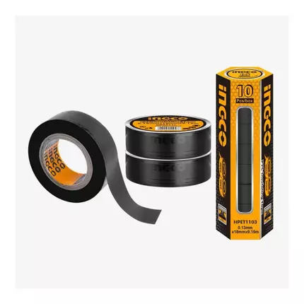 Specifications: Brand: Ingco Model: HPET1103 Type: Insulating Tape Material: PVC Length: 9.15m(10yards) Color: black Width: 18mm Thickness: 0.13mm Packed by label
