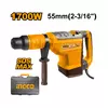 Features: Constant electronics power for consistent performance Variable speed control for optimal operation Chisel-locking system for easy tool changes Double anti-vibration system for reduced user fatigue Indicators for power supply and carbon brush maintenance Comes with 1 set of extra carbon brushes Packed in a carrying case Specifications: Brand: Ingco Model: RH1700558 Type: Rotary Hammer Rated Voltage: 220-240V~50/60Hz Input Power: 1700W No-load Speed: 100-220 rpm Impact Rate: 1750-2150 bpm Impact Energy: 5-19 J Maximum Drilling Capacity: Concrete: 55 mm Core Bit: 150 mm Chuck System: SDS MAX