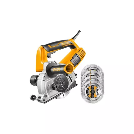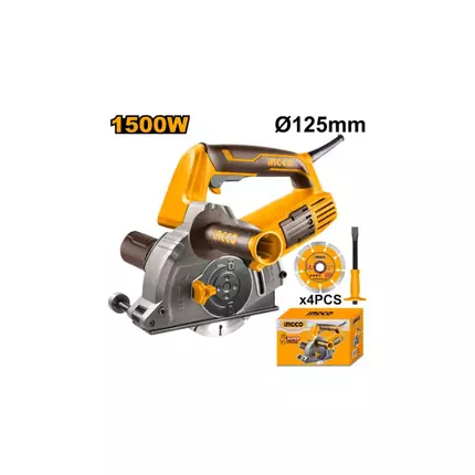 Specifications: Brand: Ingco Model: WLC15008 Type: Wall Chaser Voltage:220-240V~50/60Hz Input power:1500W No-load speed:10500rpm Disc diameter:125mm Spindle thread:M14 Cutting depth:3-29 mm Cutting width:8-30 mm With 1pcs chisel With 1pcs auxiliary handle With 1set extra carbon brushes With 4pcs cutting discs Packed by color box
