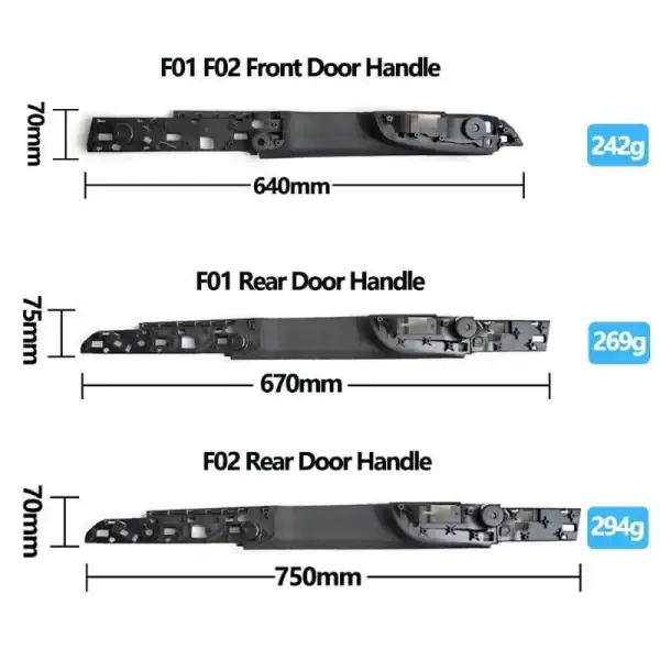 Inner Door Pull Handle Assembly Front Black Left 51419115533 CC-1282 Compatible With BMW 7 Series F01 F02 2009-2016