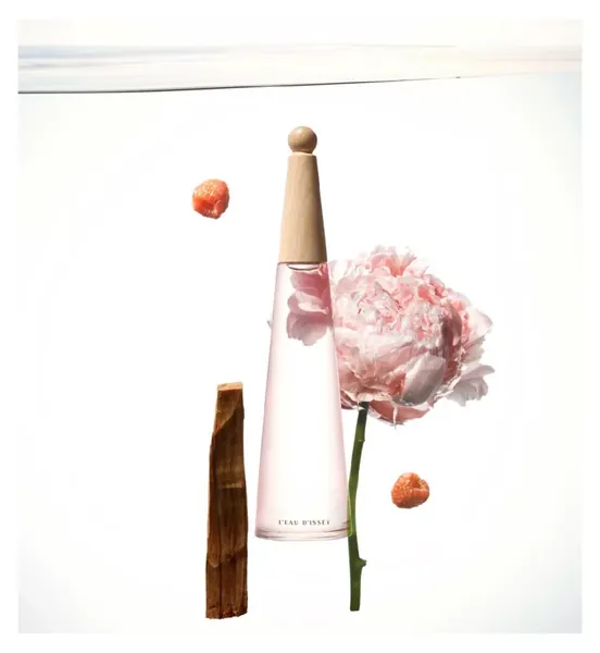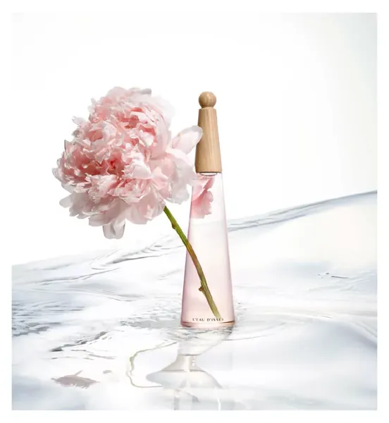 Nature is at the heart of L'Eau d'Issey Pivoine, from the perfume to the bottle. The emblematic Issey Miyake design is infused with a light-filled pink, inspired by the peony petal radiating delicately through the fragrance. Its transparency contrasts with the opacity of the 100% wooden cap, echoing the encounter between the purity of water and the density of matter.