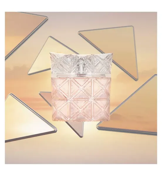 Light refracts through the multi-faceted design, creating an energetic sense of movement. Tinted with the sunrise pink of the perfume within, the refillable transparent bottle — made in France with 15% recycled glass — reveals a luminous purity.