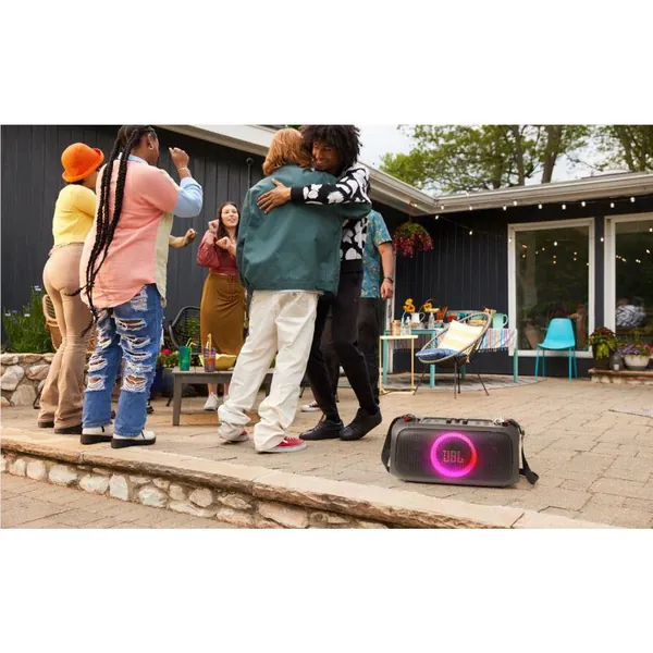 Find your beat with 100 watts of powerful, booming JBL Pro Sound. Indoors or out, the JBL PartyBox On-The-Go Essential delivers crisp highs, pure mids, and heavy bass—with Bass Boost to keep the good times going all night.