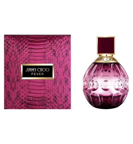 A hypnotic play on contrasts between floral and gourmand, Jimmy Choo Fever is an addictive scent that carries its wearer into the night, leaving an addictive sensual trail behind her. The bottle is adorned with an intense deep plum lacquer and the fragrance radiating from its centre as the light dances on its multi-faceted form.