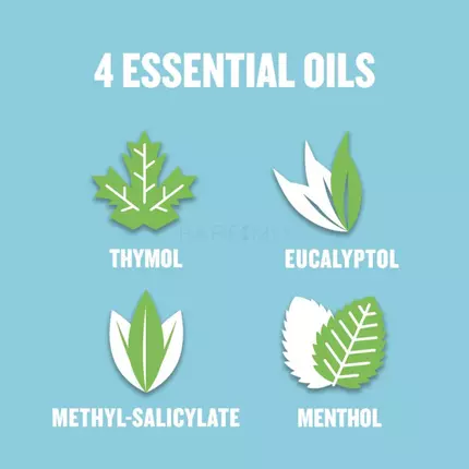 Aqua, Propylene Glycol, Sorbitol, Poloxamer 407, Sodium Lauryl Sulfate, Eucalyptol, Benzoic Acid, Sodium Benzoate, Methyl Salicylate, Thymol, Sodium Saccharin, Sodium Fluoride, Menthol, Sucralose, Aroma, CI 42053, Contains Sodium Fluoride (220 ppm F).
