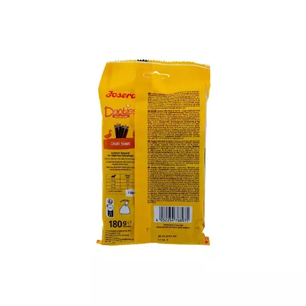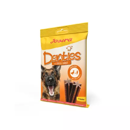 Brushing teeth, except much tastier: our new Josera Denties chews make dental care your dog's favourite hobby! The cellulose in Josera Denties Duck & Carrot ensures enjoyable dental care — thanks to its composition, this ingredient helps daily teeth cleaning. Delicious duck and carrot provide an unbeatable taste.