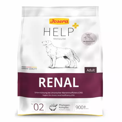 Has your beloved dog been diagnosed with chronic renal insufficiency (CRI)? You can support him with a special feed: Our Josera Help Renal is tailored exactly to this case. The gluten-free complete dietary feed helps to relieve the kidneys in particular thanks to its protein and phosphorus reduction. B vitamins, which are increasingly lost due to the disease, are also supplied by the crunchy kibbles. This is a delicious way to fill the increased nutritional needs. The nettle contained in the phytogenic complex is traditionally used for flushing therapy of the draining urinary tract and is valued for its anti-inflammatory properties. In this way, Josera Help Renal can help to slow down the process of kidney disease, increase the dog's well-being and maintain the quality of life as good as possible. The diseased kidney is relieved with this dietary therapy.
