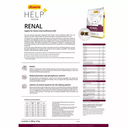 Josera Help Renal Dog dry 900g Support for chronic kidney disease (Pack of 5) (CKD) (E-EX)