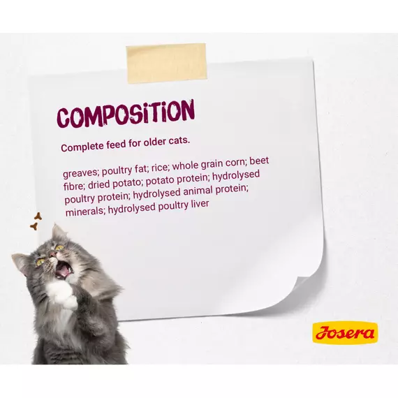 JOSERA Senior with reduced phosphorus content and a plus of valuable antioxidants is the ideal feed for cats at a mature age, which need special support during this period.