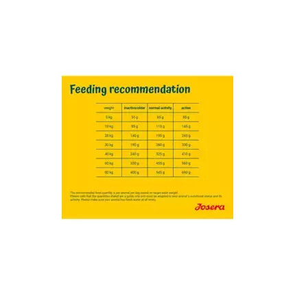The recommended feed quantity is per animal per day based on target adult weight. Please note that the quantities stated are a guide only and must be adapted to your animal´s nutritional status and its activity. Please make sure your animal has fresh water at all times.