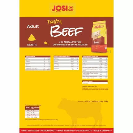 Inside or outside? It doesn't matter, as long JosiCat Tasty Beef is available! The balanced mix of ingredients in this tasty beef pet food provides outdoor and indoor cats with all the vital nutrients they need every day. In addition, of course made with only good ingredients!
