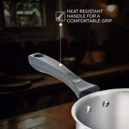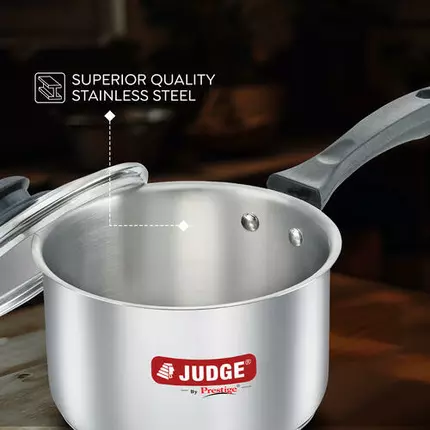 Judge Classic Stainless Steel Sauce Pan with Glass Lid - 16cm 37267 Judge by Prestige high-quality stainless steel sauce Pan, which makes it sturdy and long-lasting addition to your kitchenware. The Bakelite handle provides a firm grip, and its heat-resistant property allows you to hold the saucepan comfortably while cooking. The toughened glass lid comes in handy for covering the saucepan and keeping a watch on the cooking food. Being easy to stack, the saucepan takes up minimal kitchen space. It is convenient to clean and maintain the saucepan as the food doesn’t stick to the stainless steel surface. The saucepan is compatible to use with both induction and gas stove cooktop. Features Heat Resistant Handle Glass lid for Convenience Gas and induction Compatible Sandwich Base for Uniform Heating Superior Quality Stainless Steel