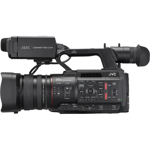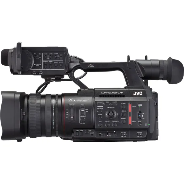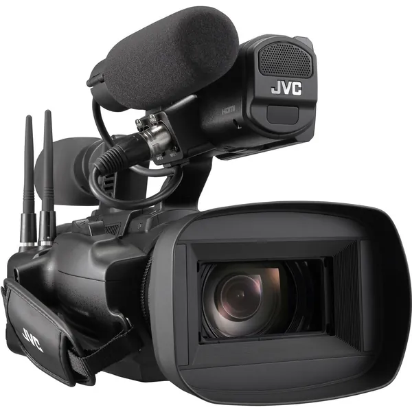 JVC's GY-HC550 Handheld Connected Cam 1" 4K Professional Camcorder is a UHD 4K camcorder that shoots in both NTSC and PAL compatible frame rates and is designed to seamlessly work with both a traditional as well as IP workflow. Built into the camera are a variety of valuable broadcast related features such as a broadcast overlay, GPS metadata, and MPEG-2 encoding in HD for easy interfacing with legacy broadcasting systems. The camera also features a built-in wireless LAN, and the Zixi wireless protocol.