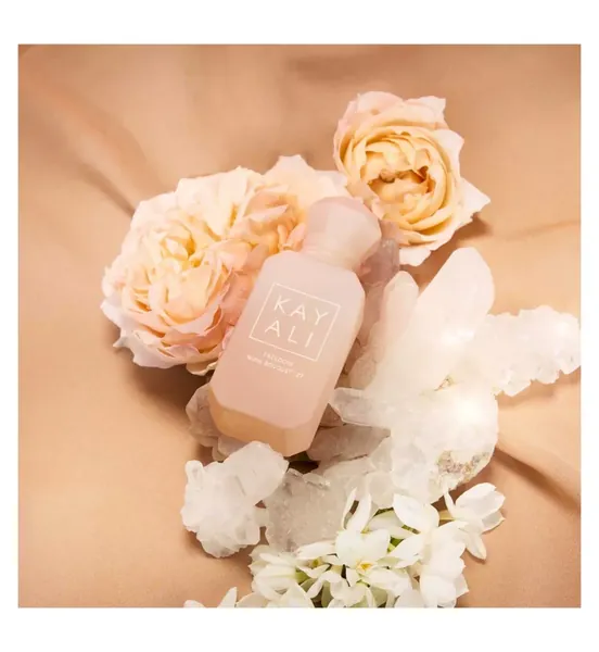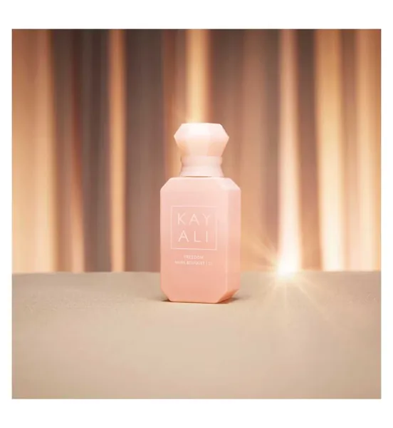 Freedom Musk Bouquet | 27 Eau de Parfum is a powerful yet dreamy expression of floral sensuality. It opens with a radiant burst of ylang-ylang, sparkling pink pepper, and luminous solar jasmine. At its heart blooms a lush Turkish rose wrapped in soft vanilla musk and ambrette, creating an unforgettable bouquet of depth and elegance. Anchored by the KAYALI signature accord and creamy sandalwood, this fragrance captures the confidence and beauty of your truest self.