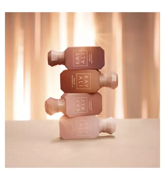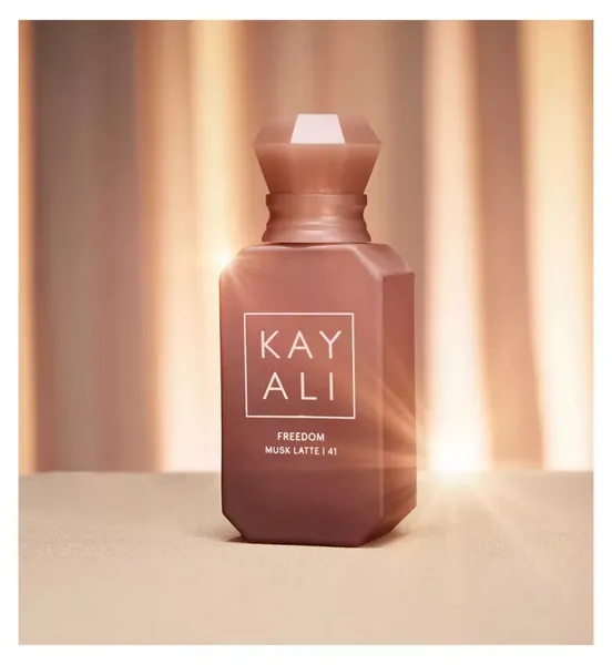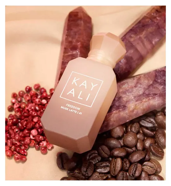 Freedom Musk Latte | 41 Eau de Parfum is a bold and inviting scent that captures the irresistible warmth of your favorite café moment. It opens with a vibrant burst of mandarin, spiced cinnamon, and pink pepper, before melting into a rich heart of velvety café latte and aromatic lavender. The luxurious base unfolds with the signature KAYALI accord, smooth cedarwood, and indulgent chocolate musk that embraces you in a dreamy scent bubble of pure coziness.