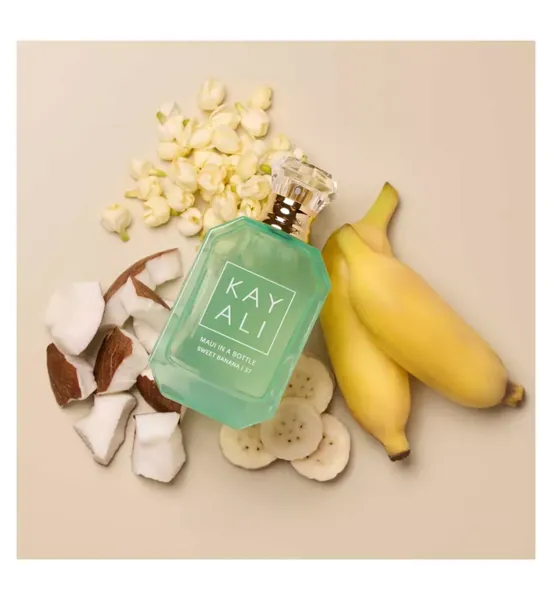 Sweet. Solar. Blissful. Travel to lush mountains and dazzling beaches with one single spritz of this tropical scent fantasy, Maui in a Bottle Sweet Banana | 37 Eau de Parfum! Opening with the creaminess of sweet banana and coconut cream, this exotic juice glows at the heart with the sunny vibes of gardenia and jasmine. Rum, sandalwood and vanilla bourbon anchor this fragrance in a sea of tempting notes.