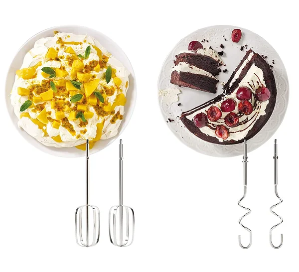 - Includes twin beaters for mixing and whipping.