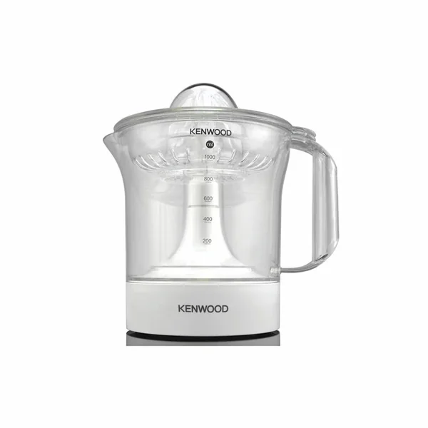 The Kenwood JE280A Citrus Juicer is a compact and efficient 40W juice extractor designed for home, office, or commercial use. It features a 1-liter transparent jug, two-way rotation for maximum yield, and convenient dishwasher-safe parts for easy cleaning.
