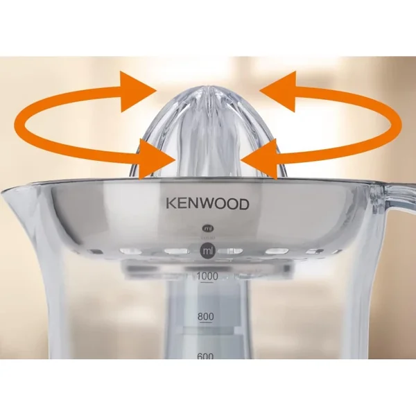 The Kenwood JE290 Citrus Press efficiently juices all citrus fruits with a sturdy, elegant design. It features a powerful two-way rotating cone and a durable stainless steel filter, while its major detachable parts are dishwasher safe for quick and easy cleaning.
