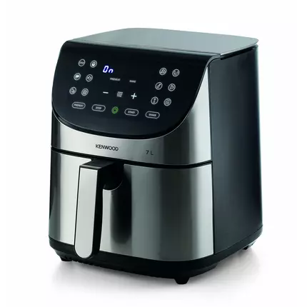 Healthy COOKING everyday, with DUAL ZONE Technology Digital Air Fryer XXXL 7L 2.8KG 1800W with Max Crisp Function, Recipe Book, Rapid Hot Air Circulation for Frying Brand Kenwood Model Number HFM80.000SS Color Silver Product Dimensions 40.5 x 39.5 x 32.5 cm; 6.5 kg Capacity 7 Liters Power / Wattage 1800 watts Voltage 220 Volts Material Aluminum, Plastic Special Features Temperature Control Item Weight 6.5 Kilograms