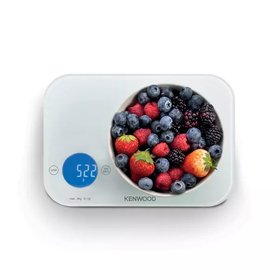 Kenwood Digital Kitchen Scale With 6 Weighing Units, 3mm Tempered Glass, Touch Control, 3 Aaa Batteries, Tare/Zero Function, Auto Shut-Off, White,1G-8Kg Capacity WEP50.000WH