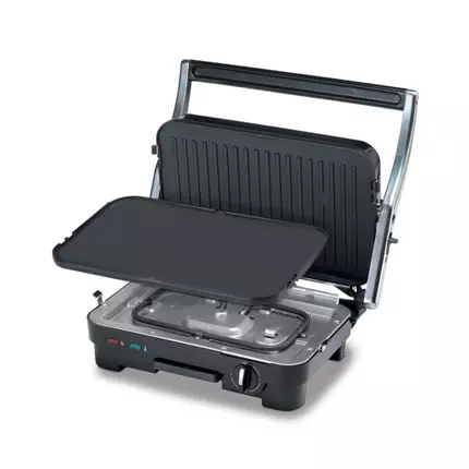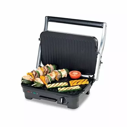 Kenwood HGM50.000SI 1800W Bimetal Health Grill that will suit perfectly, your on-the-go lifestyle. Make healthy, oil-free meals or dishes during camping trips, beach outings and conventions or for a cozy family-night dinner. With a full 180 degrees opening design, roast on both sides simultaneously for a faster and more convenient outcome and it comes with 1800 Watts for perfect heating. Detachable Contact Grill 1800W Cool -touch Handle Power & Ready Light Indicator Oil Trip Tray Non- Stick Coating For Easy Cleaning Double - face use plate, One side grill the other side flat Plate size : 29*18cm Open angle : 105 or180 degree angle Adjustable temperature control. Removable plates for easy cleaning Power on 'and 'ready' light indicator with thermostatic control Sold cast aluminum grill plates- for best heat transmission for perfect even cooking Double-sided grill, push buttons for easy grill plate release Large opening handle Specification Brand: Kenwood Model Number: HGM50.000SI Color: Black/Metal Product Dimensions: 32 x 30 x 8 cm; 3.56 Kilograms Power / Wattage: 1800 watts Item Weight: 3.56 kg