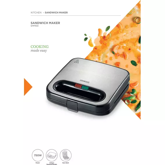 Filled with delicious flavor combinations, and most likely oozing with melted cheese, the toastier is one of our favorite comfort foods. With the Kenwood SMM00.000SI, you can create two toasted sandwiches at the same time. It is easy to clean and has a metal cover, making it a beautiful machine to feature in your kitchen. Kenwood’s newly launched SMM00.000SI Sandwich Maker has a stainless steel body with a touch of black which provides an elegant look to your kitchen. It has 2 sets of multi-functional plates for grilling and toasting sandwiches. It has non-stick plates with temperature indicator lights. Plastic 2in1 Sandwich Maker 2 Sets of multi-functional plates for grilling and toasted sandwiches Removable, Non-stick plate for easy cleaning The temperature indicator light for optimal results White housing 220-240V 50Hz 750W-UK plug Thermostatically Controlled Safety thermal cut-out and thermal fuse Specification Power: 750 W 2 Slices Non-stick Easy cleaning Warranty: 1 Year