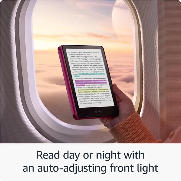 The glare-free display and auto-adjusting front light let you read in the brightest sunlight or late into the night.