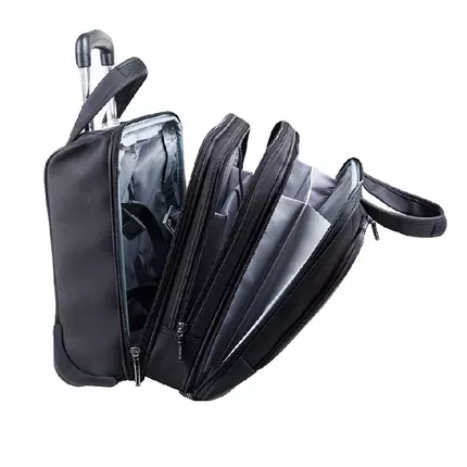 The Prime Series trolley bag is compartmentalized for laptops and tablets, offers space for filing and storage with three zippered compartments, and allows ease of carrying with its trolley handle and wheels.