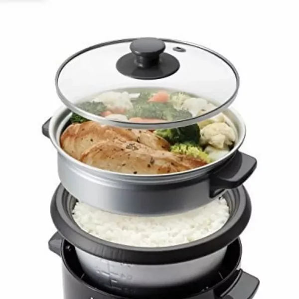 - Cook rice and steam food (fish, meat, poultry, vegetables) at the same time