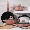7 Piece Cookware Set Dimensions: Pot 18x9 cm / 2 lt Pot 22x11 cm / 3.8 lt Short Pot 26x7.5 cm / 3.5 lt Pan 26x5.5 cm / 2.5 lt Features Volcanic looking PTFE coating with excellent non-stick properties on interior surfaces Extra resistance and strength against scratching It is produced from environmentally friendly materials that can be recovered by recycling. Easy to clean It does not contain harmful heavy metals such as lead and cadmium. It provides high cooking performance even at low heat with its high thermal conductivity. It makes more delicious meals by using less oil than other types of cookware. It is produced from materials that can be recovered by recycling. The raw material of the volcanite-coating is produced by Weilburg in Germany with superior German technology. Zeta, which is produced from recycled, completely natural material, with environmentally friendly technology, makes delicious meals using very little oil with its extra scratch-resistant volcanic-looking PTFE coating and high-temperature resistant silicone outer coating.