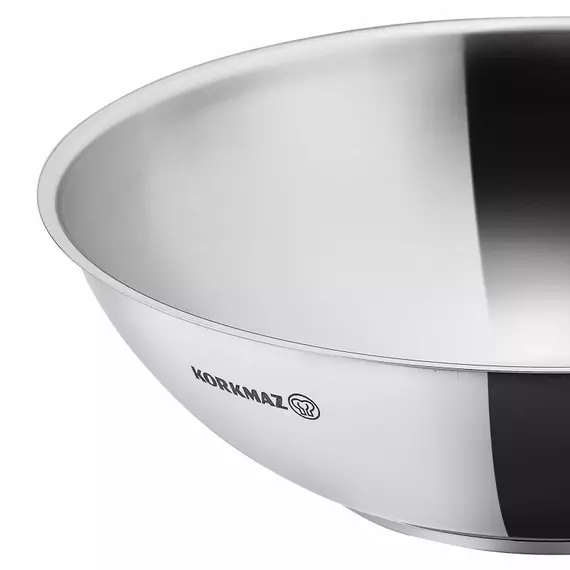 Features Size: 28x8.5cm 3.5 liters WOK pan brand Korkmaz, inner diameter 28 cm, capacity 3.5 l, height 8.5 cm, made of stainless steel 18/10 Cr-Ni (chrome-nickel). The durable handle, made of Bakelite, offers comfort during use, facilitating the handling of the pan. The "Solar Base" base offers maximum time and energy savings, ensuring optimal heat transfer and its uniform distribution on all types of hobs, including induction ones. The "Solar Base" base is composed of 3 thick layers, it provides maximum time and energy savings. Weight: 0.86 kg It can be used on every hob, including the induction hob and the stove. Use in the microwave is prohibited! Do not use metal sponges for cleaning! Product manufactured in Turkey. Feel the comfort of the 18/10 Cr-Ni Stainless Steel