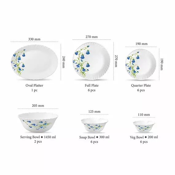 La Opala Dinner Set Blue Bells Classique 38 Pieces LB038