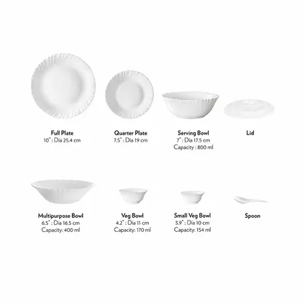 La Opala Dinner Set Ivory White 38 Pieces L1038
