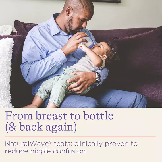 Lansinoh’s feeding bottles for baby have been crafted for a comfortable hold while feeding baby. Our BPA and BPS free baby bottles come complete with our innovative NaturalWave™ teats - clinically proven to reduce nipple confusion and allowing baby to control the milk flow and enjoy a comfortable feed.