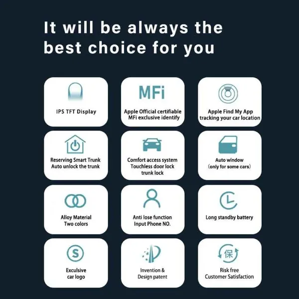 COMPATIBLE WITH AUDI BMW MERCEDES JAGUAR RANGE ROVER PORSCHE VOLKSWAGEN SKODA VOLVO NISSAN JEEP MARUTI TOYOTA HYNDAI KIA MG FERRARI LAMBORGHINI FORD MINI COOPER LCD LED KEY LCD SMART CAR KEY MULTI LANGUAGE EQUIPPED WITH MECHANICAL SPARE LCD LED SMART KEY ENTRY LOCK UNLOCK CAR KEYS WITH MOBILE PHONE APP FUNCTION