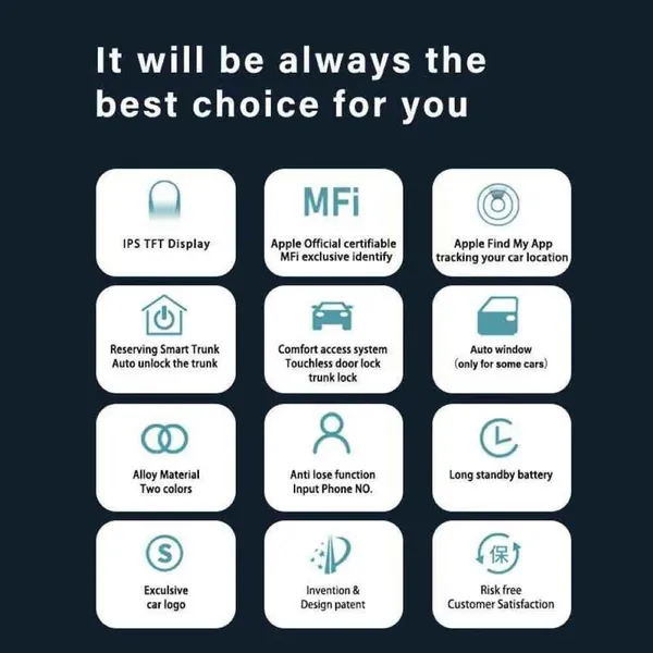 COMPATIBLE WITH AUDI BMW MERCEDES JAGUAR RANGE ROVER PORSCHE VOLKSWAGEN SKODA VOLVO NISSAN JEEP MARUTI TOYOTA HYNDAI KIA BENTLEY MG FERRARI LAMBORGHINI FORD MINI COOPER LCD LED KEY LCD SMART CAR KEY MULTI LANGUAGE EQUIPPED WITH MECHANICAL SPARE LCD LED SMART KEY ENTRY LOCK UNLOCK CAR KEYS WITH MOBILE PHONE APP FUNCTION