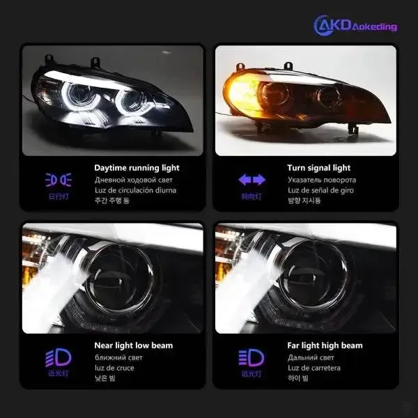 LED Headlight Angel Eye DRL Signal Lamp Light Hid Compatible With BMW X5 2007-2013 E70