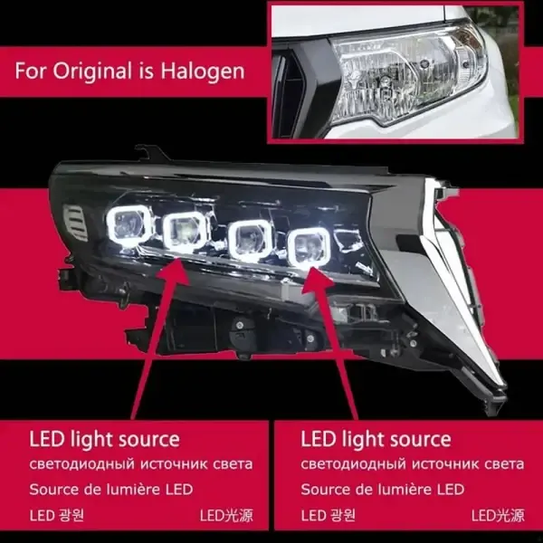 LED Headlight DRL All LED Light Source Compatible With Toyota Prado 2018-2019 Land Cruiser Prado