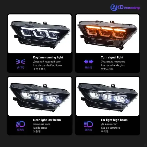 LED Headlight DRL Hid Bi Xenon Compatible With Ford Mustang 2015-2017