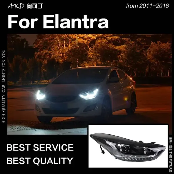 LED Headlight DRL Hid Bi Xenon Compatible With Hyundai Elantra 2011-2016 Elantra MD