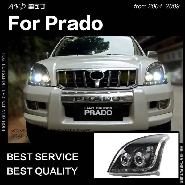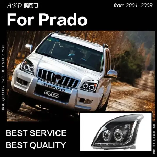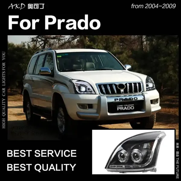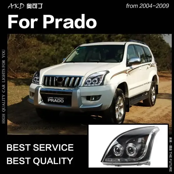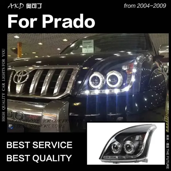 LED Headlight DRL Hid Head lamp light Angel Eye Bi Xenon Beam Compatible With Toyota Prado 2004-2009