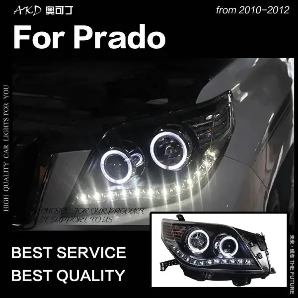 LED Headlight DRL Hid Head lamp light Angel Eye Bi Xenon Beam Compatible With Toyota Prado 2010-2012 LC150