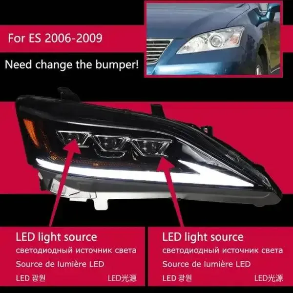 LED Headlight DRL Signal Projector Lens Compatible With Lexus ES ES200 ES300 ES250 2006-2012