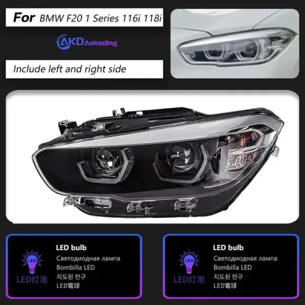 LED Headlight DRL Turn Signal High Beam Angel Eye Projector Compatible With BMW F20 1 Series 116I 118I 2015-2018