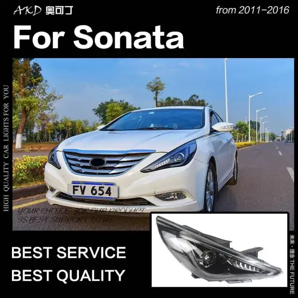 LED Headlight Dynamic Turn Signal LED DRL Hid Bi Xenon Compatible With Hyundai Sonata 2011-2016